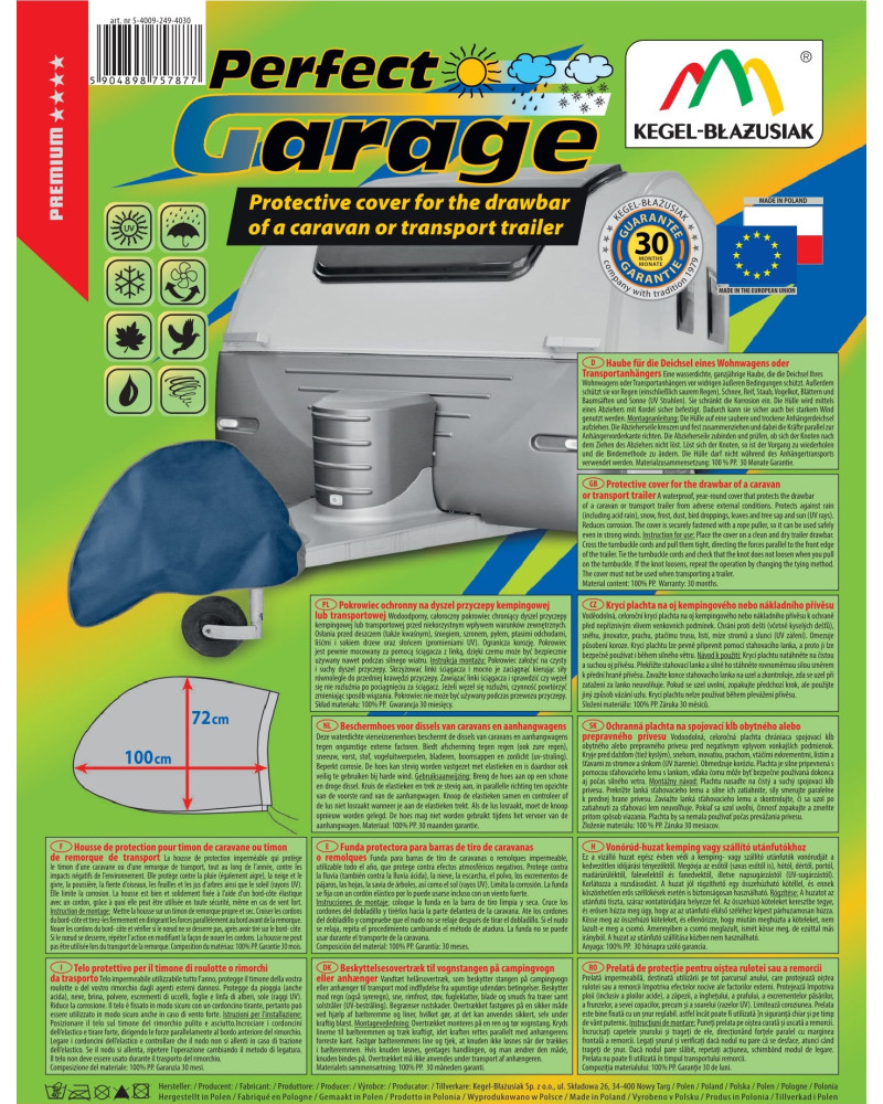 Eine wasserdichte, ganzjährige Haube, die die Deichsel Ihres Wohnwagens oder Transportanhängers vor widrigen äußeren Bedingungen schützt. Außerdem schützt sie vor Regen (einschließlich saurem Regen), Schnee, Reif, Staub, Vogelkot, Blättern und Baumsäften und Sonne (UV Strahlen). Sie schränkt die Korrosion ein. Die Hülle wird mittels eines Abziehers mit Kordel sicher befestigt. Dadurch kann sie sicher auch bei starkem Wind genutzt werden.