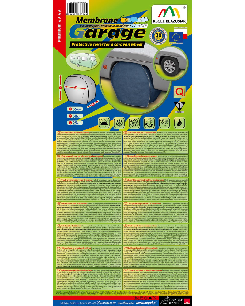 Wasserdichte und gleichzeitig dampfdurchlässige Membranschutzhülle für ein Wohnwagenrad zum Schutz vor ungünstigen Witterungsbedingungen. Es handelt sich hierbei um eine wetterfeste Schutzhülle, die vollständig aus einer hochgradig dampfdurchlässigen Membran hergestellt ist. Sie schützt vor schädlicher Wirkung der Sonne und Niederschlägen. Sie ist auch bei starkem Regen wasserdicht und zugleich dampfdurchlässig, so dass die Feuchtigkeit unter der Abdeckung nach außen geleitet wird. Sie verringert die Korrosion und Alterung eines Rades und von Kunststoffteilen und schützt vor Ausbleichen und Anlaufen von Lacken und Chromteilen. Sie wird mit einem Stopper befestigt, so dass sie sicher sitzt und leicht aufgezogen werden kann.