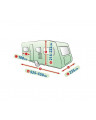 Die Hülle ist mit einer Klappe für die Wohnwagentür ausgestattet. Zum Öffnen der Klappe sind die seitlichen Reißverschlüsse und der Klettverschluss an der Unterkante der Klappe zu öffnen.