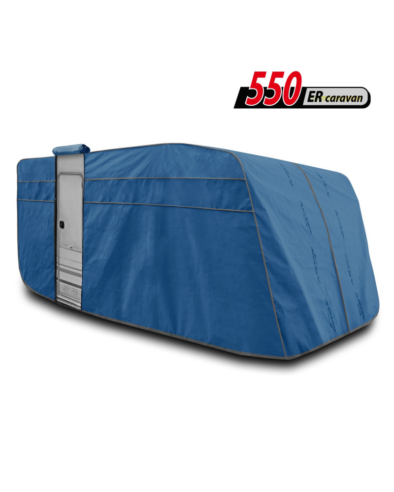 Die Hülle ist mit einer mit Reißverschlüssen verschließbaren Klappe ausgestattet, die das Öffnen der Wohnwagentür ohne Notwendigkeit des Hüllenabzugs ermöglicht. Sie schützt vor Lochfraß sowie vor dem Verblassen als auch dem Mattwerden von Lack und Chromelementen. Sie schützt auch vor meisten Rissen und vor Korrosion. Außerdem schützt sie vor Regenschauern (auch saurem Regen), Sonnenstrahlen (UV-Strahlung), Staub, Vogelexkrementen, Baumblättern und -säften, Schnee und Frost. Die Hülle ist gut angepasst, wird sicher mit Schnallen verschlossen und ist aus einem starken und einseitig glatten Material gefertigt. Dadurch kann sie auch bei starkem Wind verwendet werden. 30-monatige Garantie.