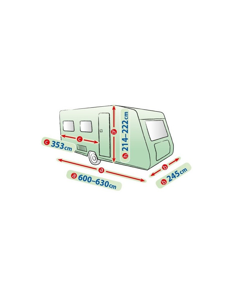 Die Hülle ist mit einer mit Reißverschlüssen verschließbaren Klappe ausgestattet, die das Öffnen der Wohnwagentür ohne Notwendigkeit des Hüllenabzugs ermöglicht. Sie schützt vor Lochfraß sowie vor dem Verblassen als auch dem Mattwerden von Lack und Chromelementen. Sie schützt auch vor meisten Rissen und vor Korrosion. Außerdem schützt sie vor Regenschauern (auch saurem Regen), Sonnenstrahlen (UV-Strahlung), Staub, Vogelexkrementen, Baumblättern und -säften, Schnee und Frost. Die Hülle ist gut angepasst, wird sicher mit Schnallen verschlossen und ist aus einem starken und einseitig glatten Material gefertigt. Dadurch kann sie auch bei starkem Wind verwendet werden. 30-monatige Garantie.